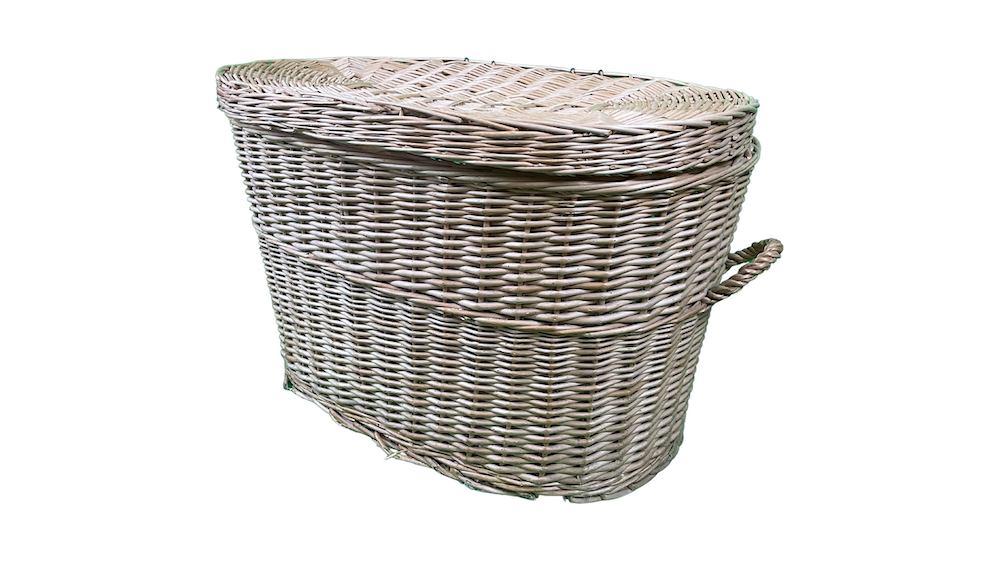 Atelier.pm vous propose à la location cette malle en osier ovale pour vos événements.